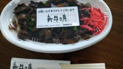 次に野菜の煮物。筍とフキです。フキを入れるとは珍しい。食べてみると・・・このお酒の香りは・・・酒粕?どうやら野菜にかかっている白いやつは酒粕だったようです。でもこれがおいしい。塩味を抑えながらもご飯に合うようしっかりとした味付け。これはご飯が進みます。総菜として売って有ったら頻繁に買いたいくらい気に入りました。