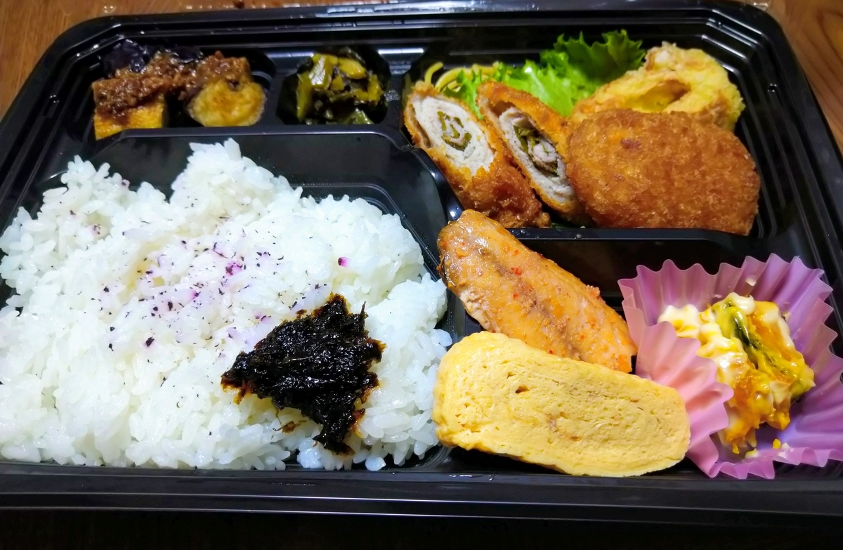 弁当には珍しい田楽味噌。食べてみると甘味が強い味付けとなっていました。これがナスとよく合う!ただ厚揚げのほうは衣が厚めで固く、田楽としての食感を悪くしていました。まだ衣は薄くていいと思う。