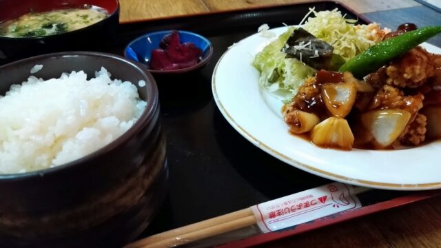 店内飲食 昔ながらの食堂スタイル 凡の風の唐揚げ定食(680円)