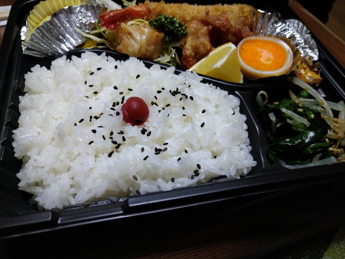 過去には唐揚げ弁当をチョイスしましたが、今回はバラエティ弁当を選びました。弁当系がコスパがよすぎるので丼ものにはまだ手を出せてません。