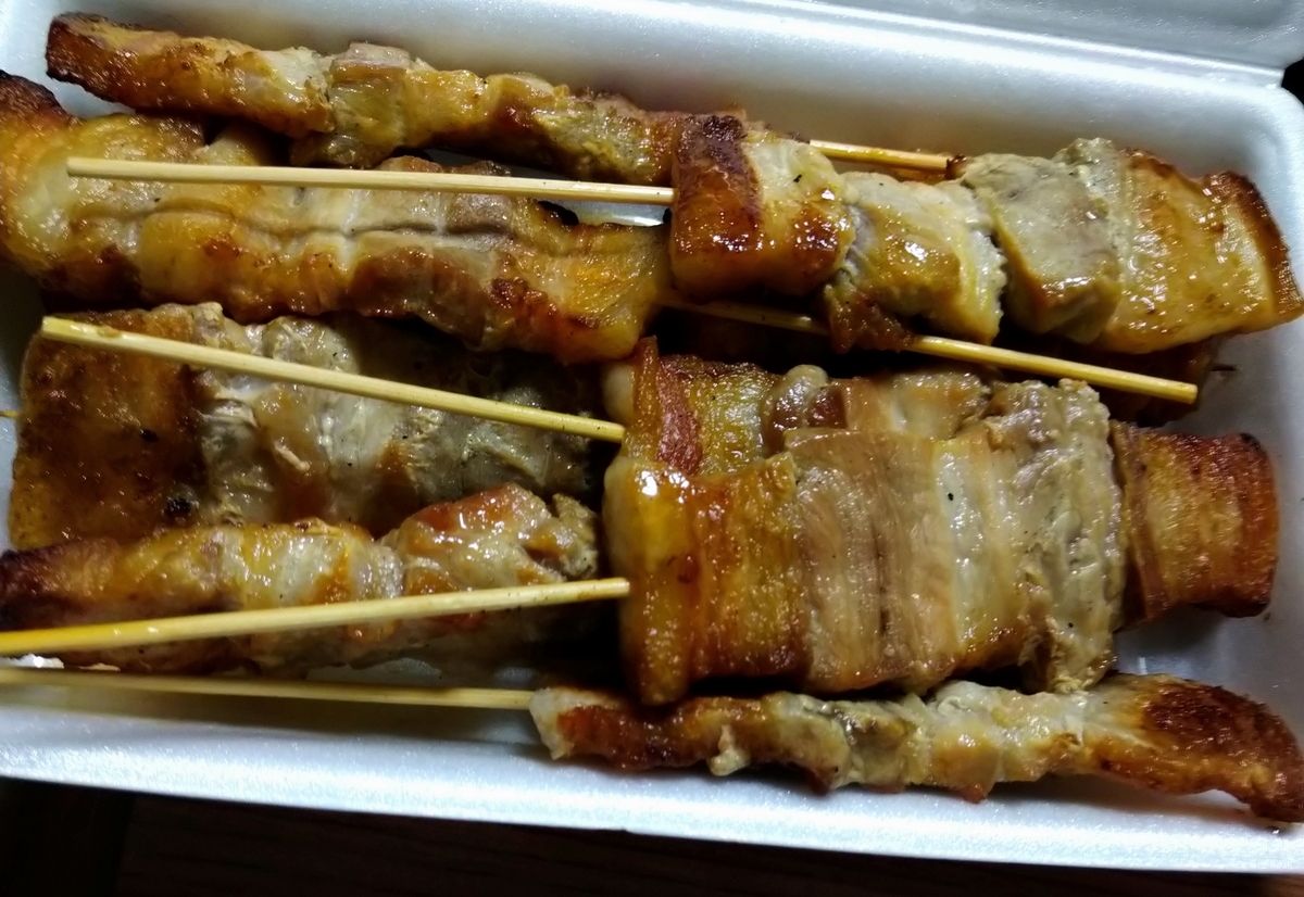 今回は持ち帰りで串物を中心に注文。内容としては豚バラや鶏皮、四つ身、鳥軟骨、ハツ、サガリ、えのきベーコン巻きといったものを注文しました