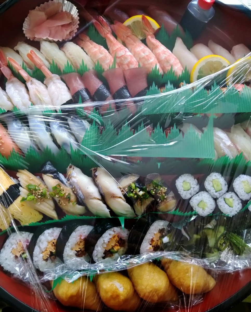 今回は中寿司の盛り合わせ(3~4人前)を注文 セットで助六も頼みました