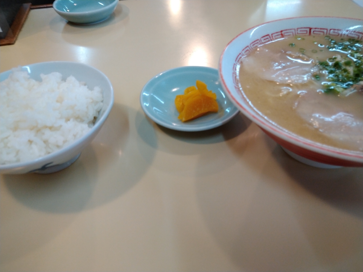 スープはメニューにもあっさりラーメンと書いてあった通り、とんこつラーメンとしては結構あっさり目。若干動物系の匂いを感じる程度で、とんこつの脂脂しい感じはあまりありません。以前食べた長福のとんこつラーメンがありましたが、それと比べると長福のほうがよりあっさりです。そこは好みのよると思いますが。