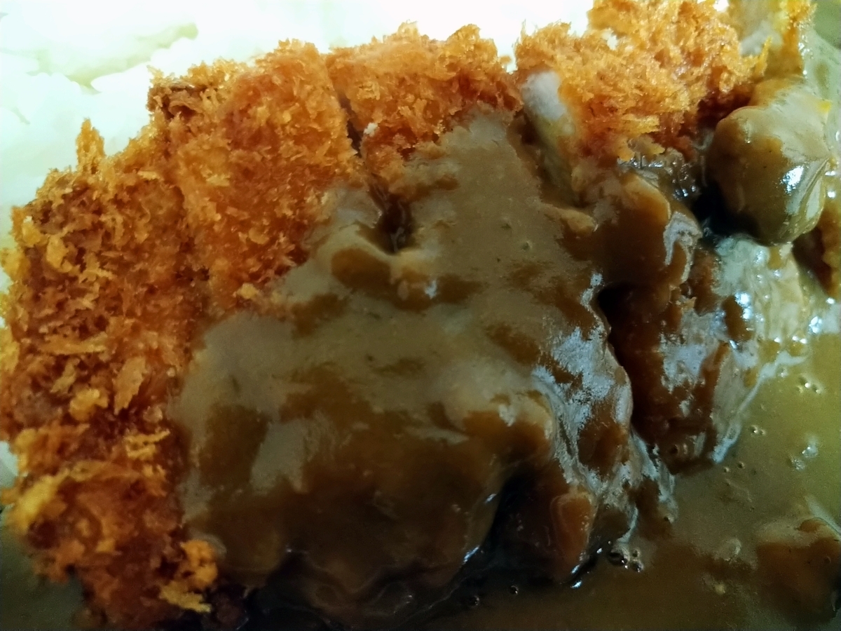 とんかつ定食に使われていた豚肉は脂身があり柔らかさがありましたが、こちらのカツは脂身少なめの赤身メインのカツでした。確かにカツカレーのカツが脂身多めだとくどくなりそうです。