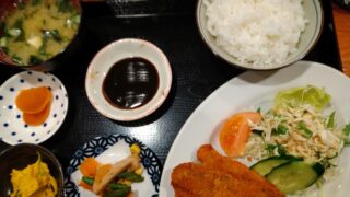 ランチメニューは日替わりメニューのみ。時々カレーがありますが、基本的には日替わりのみです。その代わりこの日替わりのコスパが高く、600円で主菜・小鉢2つ、漬物、サラダ、汁物、白ご飯がついてきます。さらに白飯は大盛がデフォルト。小鉢も煮物などしっかり味でご飯が進むボリュームがあります。店内撮影ご遠慮のため写真はありませんが、日替わりメニューは店外に掲示されているため、好みの日替わりならこうコスパでしっかり食べられておすすめです。