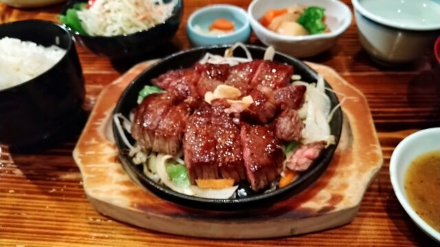 おすすめお店特集 しっかり赤身のステーキ定食 上場亭枝去木店のアンガス牛ステーキ定食(1100円)②
