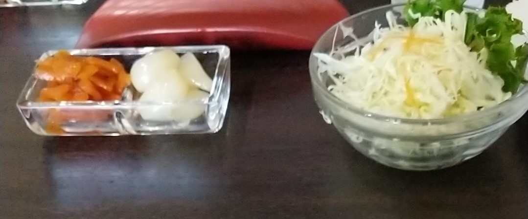 こちらが鉄板焼屋のカレー(700円)。これにサラダと福神漬けがついてきます、