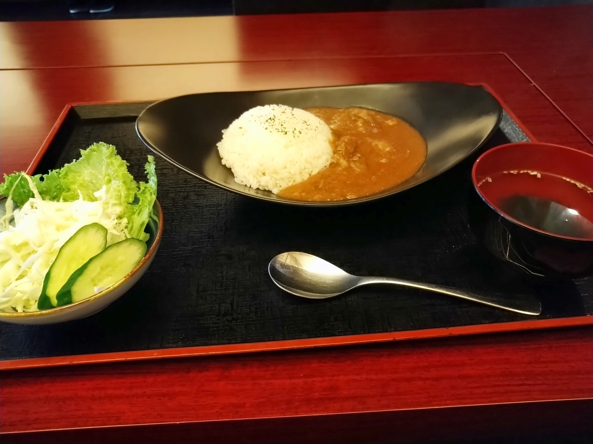 またカレーの味は食堂のカレーとしては珍しく、甘酸っぱさが強いカレー。さらにカレーの下地に別の出汁が使われているようで、良くも悪くもカレーカレーしていないカレーでした。辛さは甘口となっています。