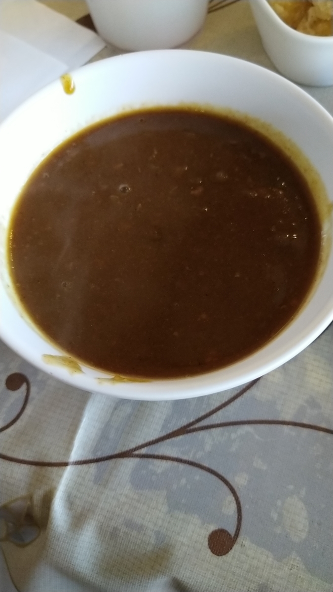 カレーにはサラダ・スープがついており、メニューに書いてお有る通り、大きめの牛筋肉が入っています。カレールーはかなり甘口。リンゴやモモ等を使っておりフルーツ系の甘みがメインで少し酸味があり、スパイシー系でなく甘酸っぱさがあるカレー。そのため胃に入っても重くなく、食べ進めやすいカレーです。辛いのが苦手な方でも安心して食べられます。