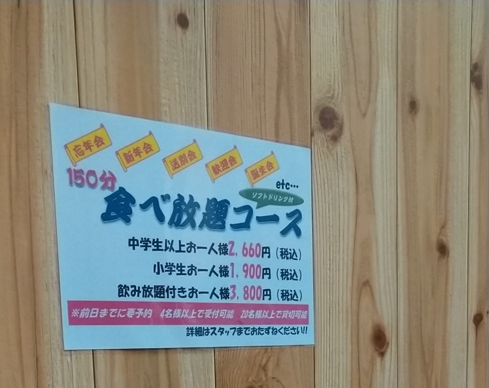 さらに4人以上から食べ放題も提供しており、大人であれば2600円となっています。唐津の居酒屋で食べ放題は珍しいですね。