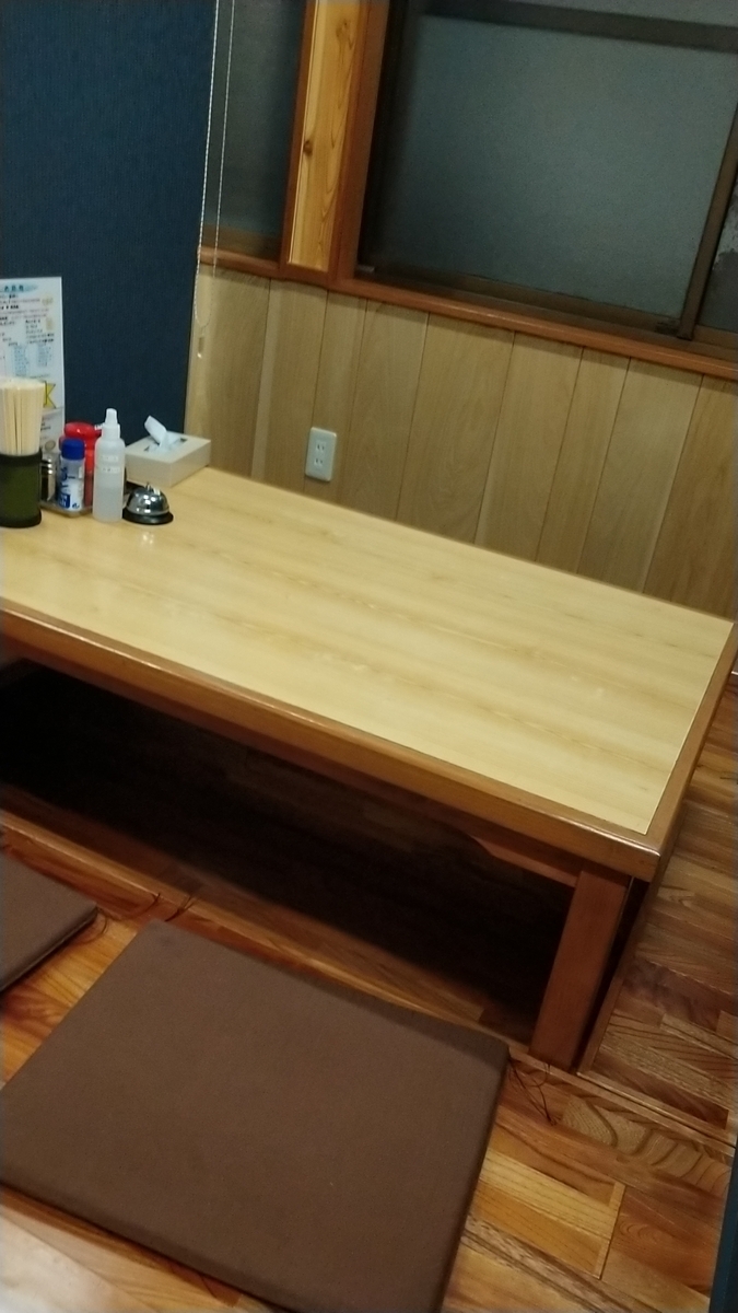 西唐津駅付近にある食堂。以前は昼も夜も食堂メニューを提供していましたが、12月に店舗を改装。カウンターやテーブルは変わっていませんが、座敷席には上からかけるタイプの仕切りがついており、隣のお客さんは見えなくなっています。