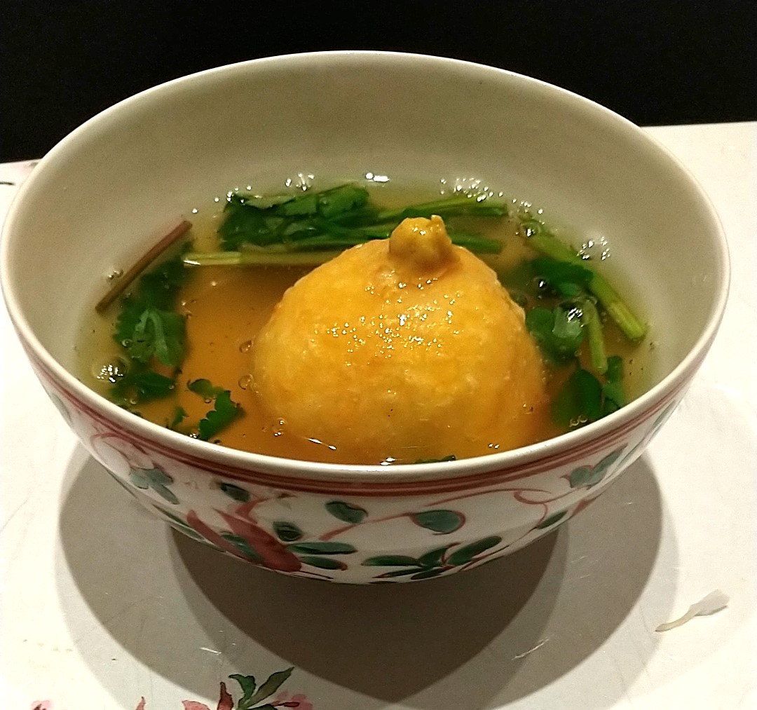 タイの潮汁。これぞまさに黄金汁。飲んどみると塩味はかなり抑えられており、タイの旨味をしっかり感じることができます。少しずつ旨味がやってくるような上品な風味をしています。白木耳もこれまた美味い。黒木耳のようなわかりやすいザクザク感でなく、シャクシャクという柔らかい歯ごたえ。