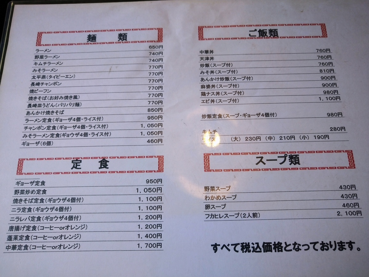 木綿町にある中華料理店中華料理店。えいちゃん食堂やひとすじと同じ道にあり、かんすけがある小道から入った奥にあります。