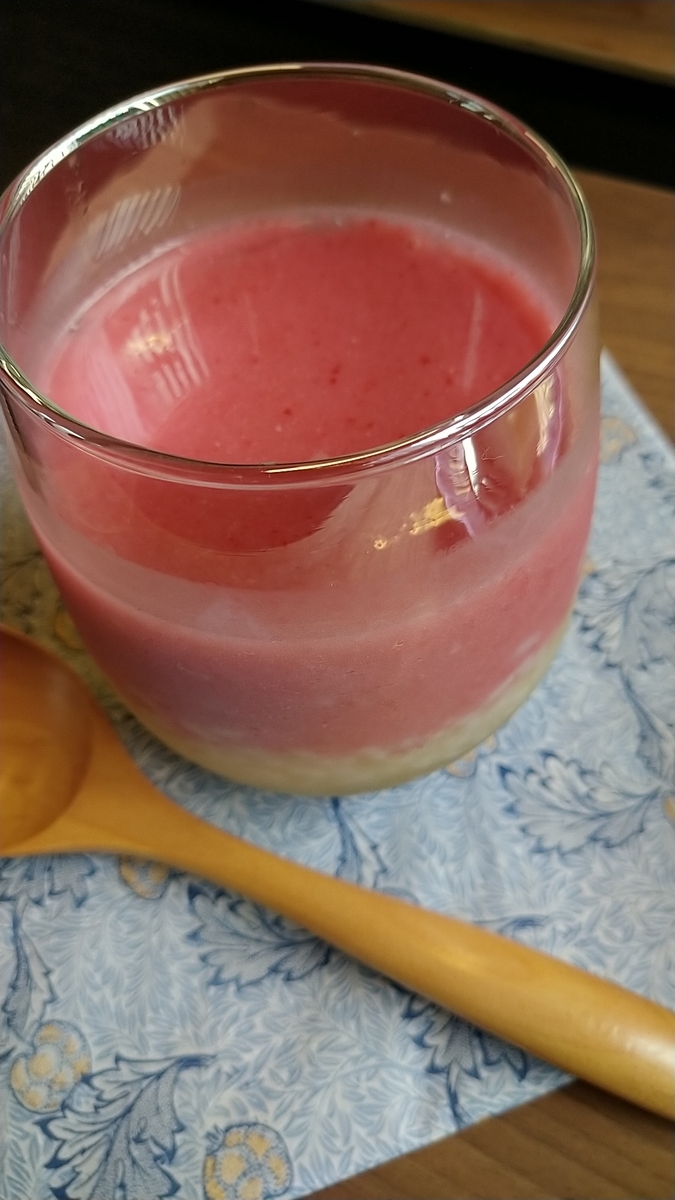 いちご甘酒は上がいちご層で下が甘酒となっているため、混ぜて飲んでみます。