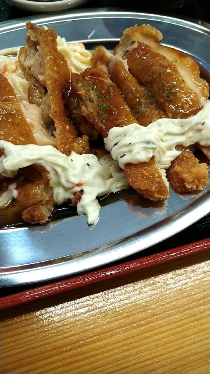 さらに鶏ももはしつかり揚げてあるタイプで鶏皮は鶏皮せんべいみたいにザクザク。ここに甘酢あんがコーティングされ、この餡が固まりさらに硬さを強くしており、ここまでザクザク感を感じる南蛮は初めてです。もはやガリガリといってもいいくらいの硬さがあります。