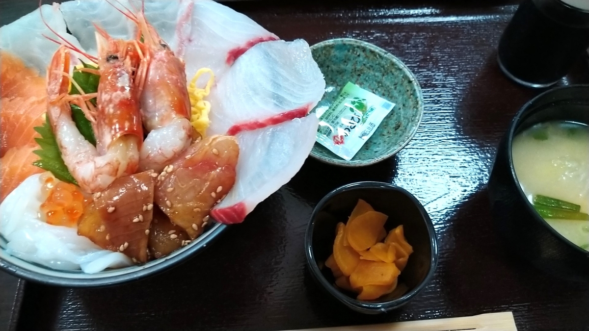 ランチは海鮮丼や天丼、鉄火丼、サーモン丼に加えまかない丼という特徴的なメニューがあります。どれにも汁物と漬物がセットとなっています。まかない丼は様々な魚の切り身を漬けにしたもので、市内でありながら1000円で食べられるお勧めの海鮮丼となっています。ちなみに普通の海鮮丼もありますが、そちらは1400円となっています。