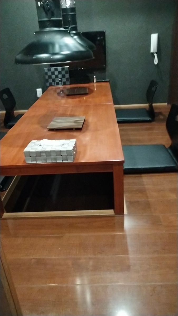店内は全室個室。基本的に掘りごたつ式の座敷席で、4人・6人掛けの部屋がメインとなっており、全室にテレビが設置されています。3面は壁で仕切られおり、入り口は扉で閉めることができるため、完全個室として周りの目を気にすることなく利用できます。
