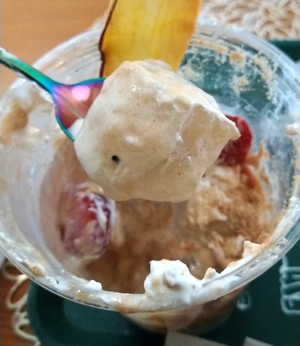 生クリームやチョコビーンズが入っているため、全体的に甘めです。そこでフローズンイチゴが甘酸っぱいので、これを間に挟んで口直しをして楽しむといった食べ方ですね。