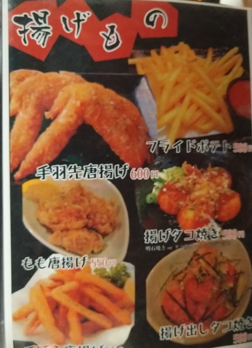 夜のみの営業で居酒屋ながらパフェやクレープにも力を入れており、いわゆる夜パフェを提供しています。居酒屋メニューとしては500~700円の一品メニューが中心。肉類や揚げ物といったTHEおつまみメニューが多く、がっつりお酒を飲みたいときにおすすめ。