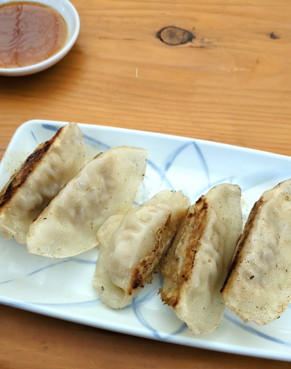 こちらがBセットの餃子(300円)。5つセットになっています。餃子自体は野菜が多めであっさり風味。だけどにんにくを感じる。これでご飯を進めるのはちょっときついかな。ラーメンやチャーハンのお供にはちょうどいいけど。