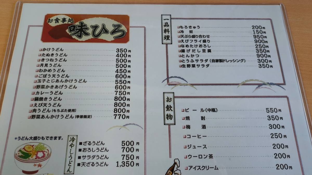 全体的に良くも悪くも普通といった感想です。近くに作道や資さんうどんなどうどん専門店もあるので、これなら定食系を頼む方がいいかなーといった感じでした。
