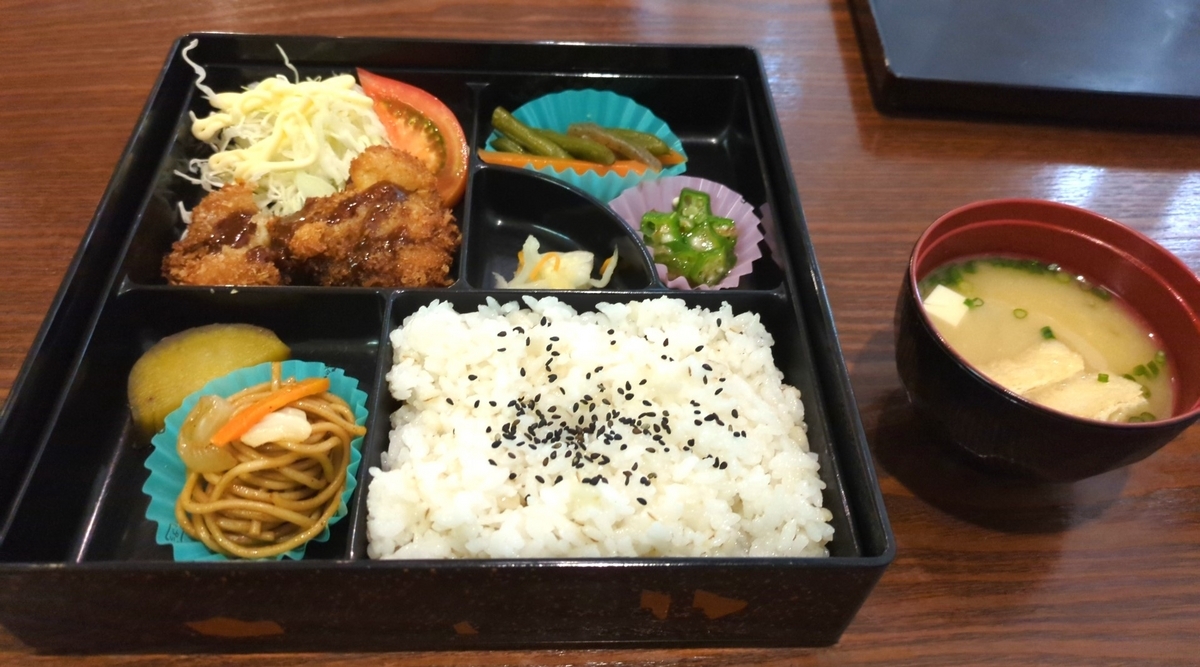今回は日替わりランチセット(700円)を注文。せっかくなので麦ごはんにしています。弁当スタイルで提供されるため、他にもお客さんがいながら注文から出てくるまで10分もかかりませんでした。副菜は予めカップに盛ってあり、ご飯と白身フライのみそのたびに作ってるようなので、白身フライは揚げたてサクサクでした。