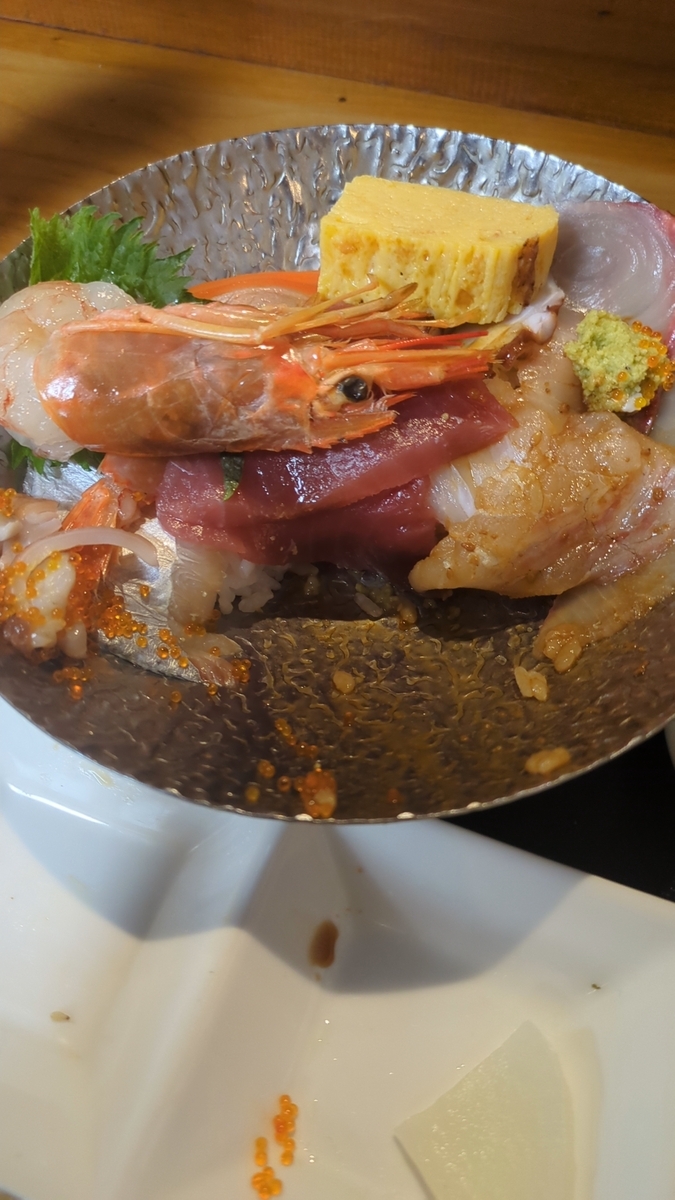 ご飯は酢飯ではなく白米です。ただほかほか白米だったので、その上に海鮮をのせてるんは許せない勢が出そう。