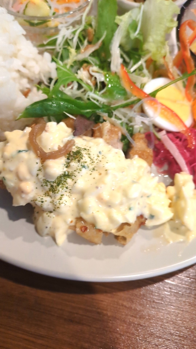 今回はこだわっていないランチプレート(1100円)を注文。この日のメインはチキン南蛮でした。