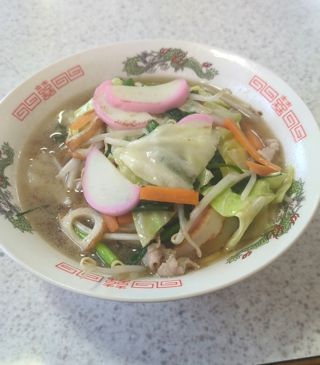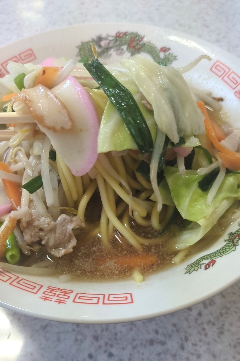 麺はよくあるコシがない小麦系太麺です。そしてスープはあっさりながらラード系のコクがある、ちゃんぽんというより中華そば系のスープに近いです。