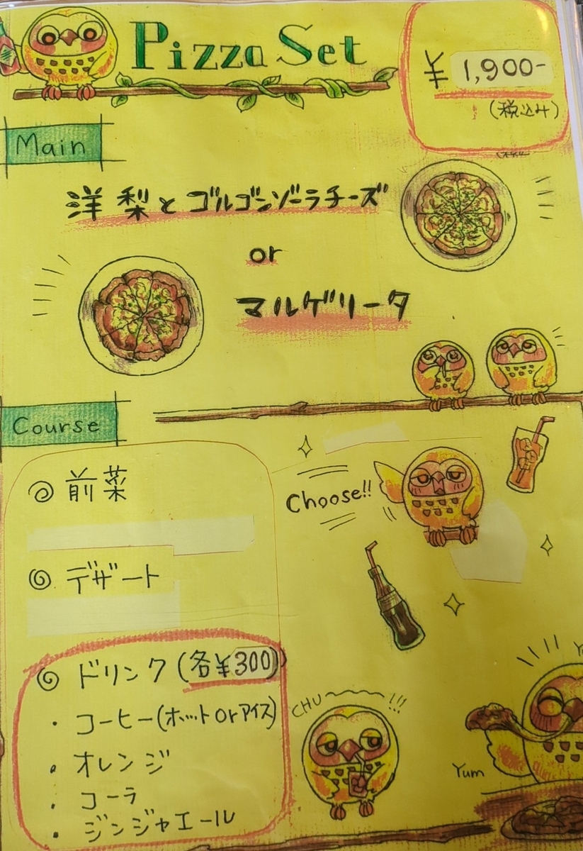 さらに洋ナシまたはマルガリータとセットがつくピザセット(1900円)。これらセットには300円でドリンクがつきます。