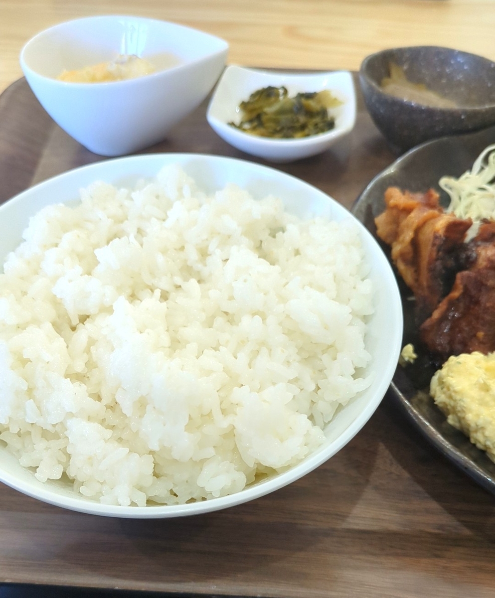 あとこれ、ご飯はそこまでボリュームがないように見えますが、器がかなりでかいです。なので普通盛でも他のお店の大盛りくらいはあります。
