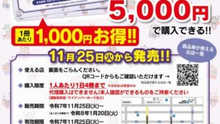 11月25日から中町・京町・平野町・材木町といった商店街で利用できる商品券がKARAEで販売されました。こちらは5000円で6000円分の商品券を購入でき、令和8年1月20日まで利用できます。 ただし商店街の中でもすべてのお店で使えるわけで...