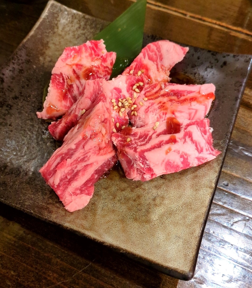 こちらは中落カルビ(600円)。600円としてはなかなかの量とサシですが、数量限定となっています。